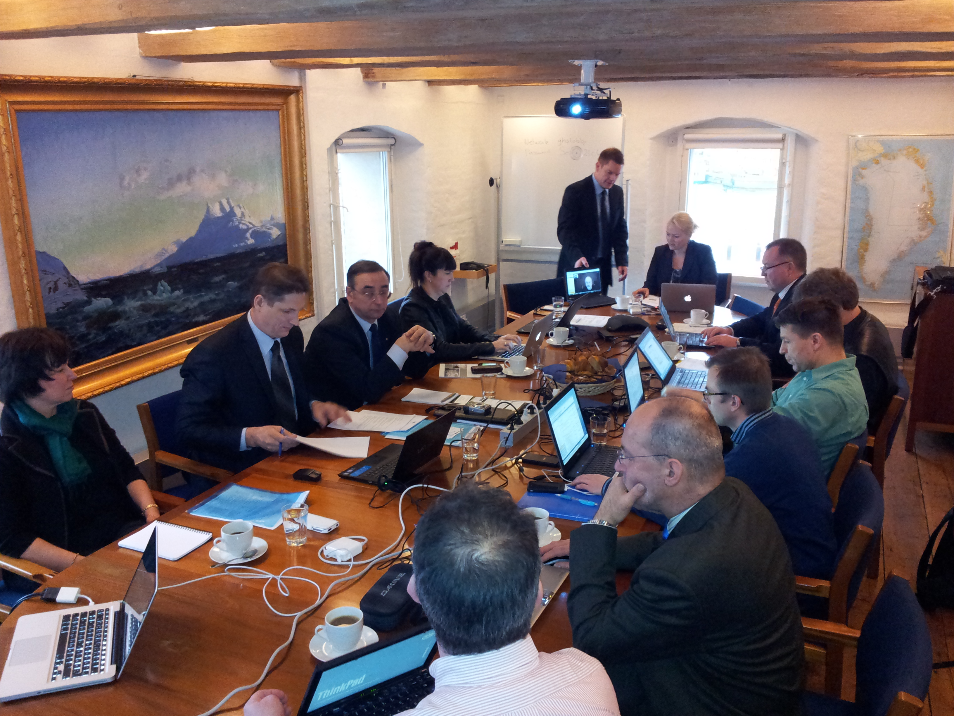 On 21. February 2012 the Arctic SDI Steering Committee met in Copenhagen. Special guests on the meeting were Dave Lovell, Executive Director of EuroGeographics and Richard Hall Service Development Managaer from Kongsberg Satellite Service. The meeting was held in The Greenlandic representation house on Copenhagen in Strandgade 91. The Chariman of the Steering Comittee is Inge Thaulow from the Government of Greenland.